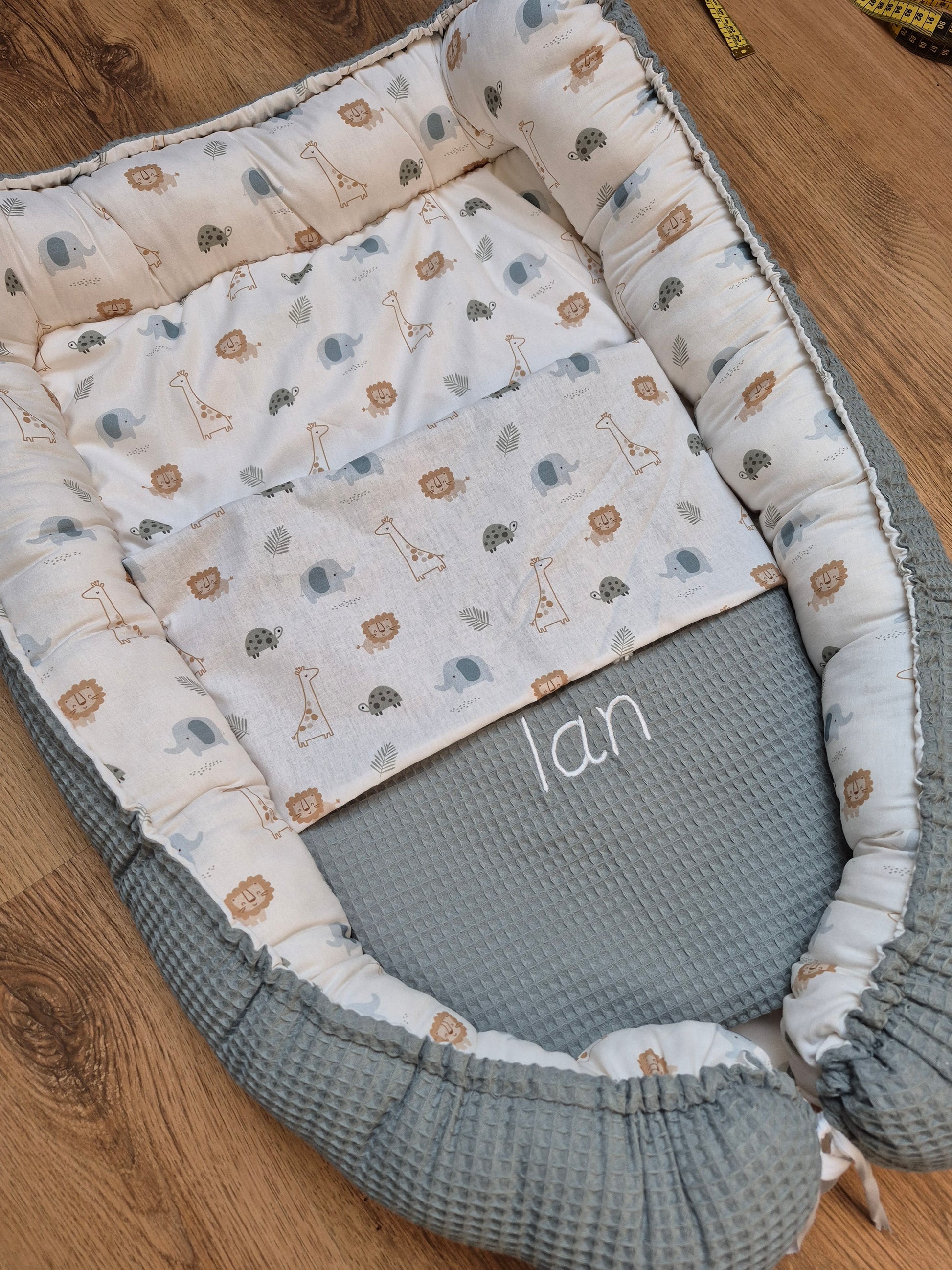 Elk babynestje wordt met liefde met de hand gemaakt in Nederland, van 100% OEKO-TEX gecertificeerd katoen. Dit betekent: geen schadelijke stoffen, enkel het beste voor de gevoelige babyhuid. De goed opstaande randen voorkomen dat je baby wegrolt en bieden extra geborgenheid – ideaal voor in de box, op de bank of tijdens een dutje onderweg.